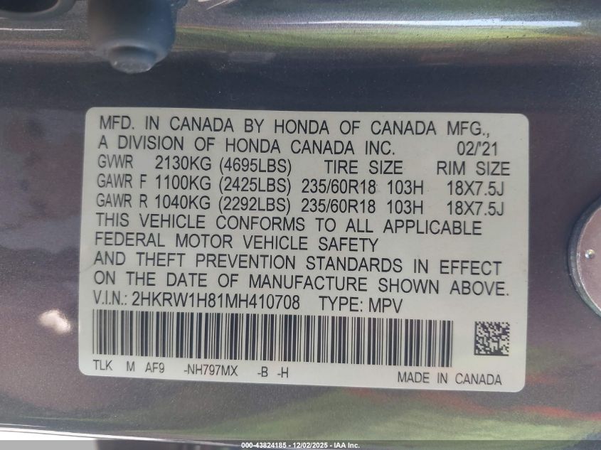 2021 HONDA CR-V 2021 року Бензин, 1.5, Передний привод, vin - 2HKRW1H81MH410708 из США