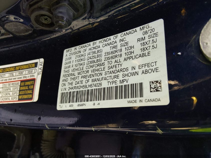 2020 HONDA CR-V 2020 року Бензин, 1.5, Полный привод, vin - 2HKRW2H59LH674026 из США