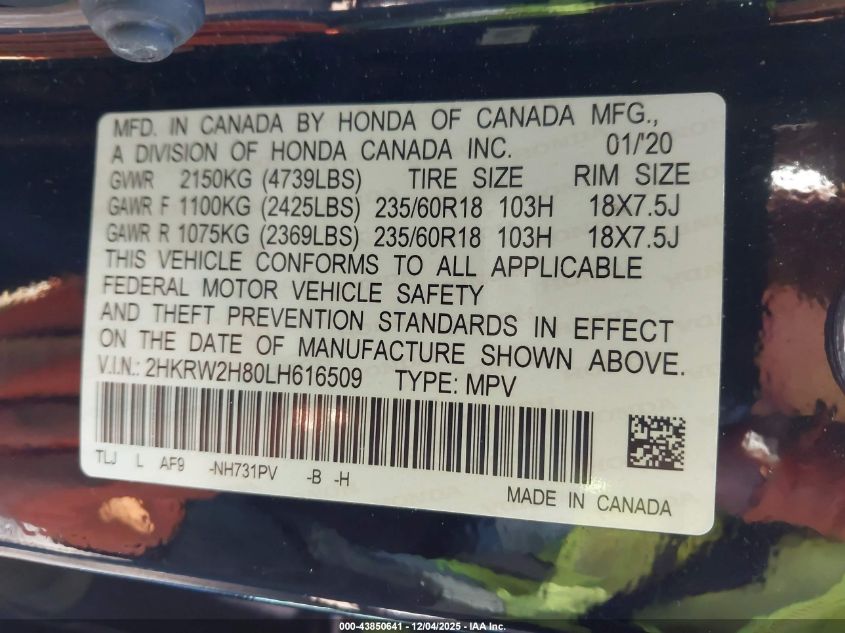 2020 HONDA CR-V 2020 року Бензин, 1.5, Полный привод, vin - 2HKRW2H80LH616509 из США