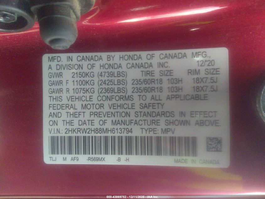 2021 HONDA CR-V 2021 року Бензин, 1.5, Полный привод, vin - 2HKRW2H88MH613794 из США
