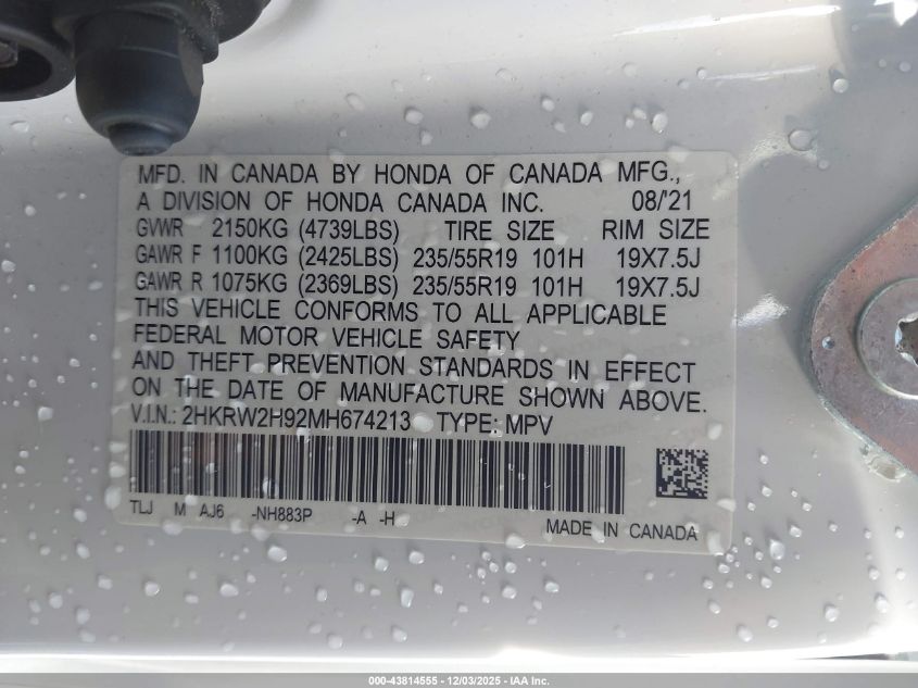 2021 HONDA CR-V 2021 року Бензин, 1.5, Полный привод, vin - 2HKRW2H92MH674213 из США