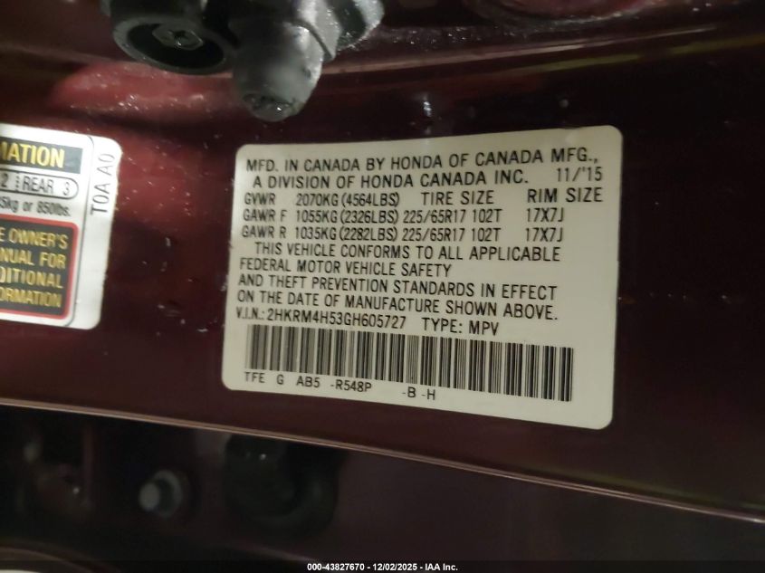 2016 HONDA CR-V 2016 року Бензин, 2.4, Полный привод, vin - 2HKRM4H53GH605727 из США