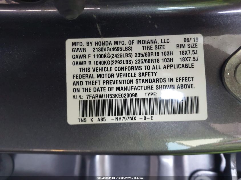 2019 HONDA CR-V 2019 року Бензин, 1.5, Передний привод, vin - 7FARW1H53KE020098 из США