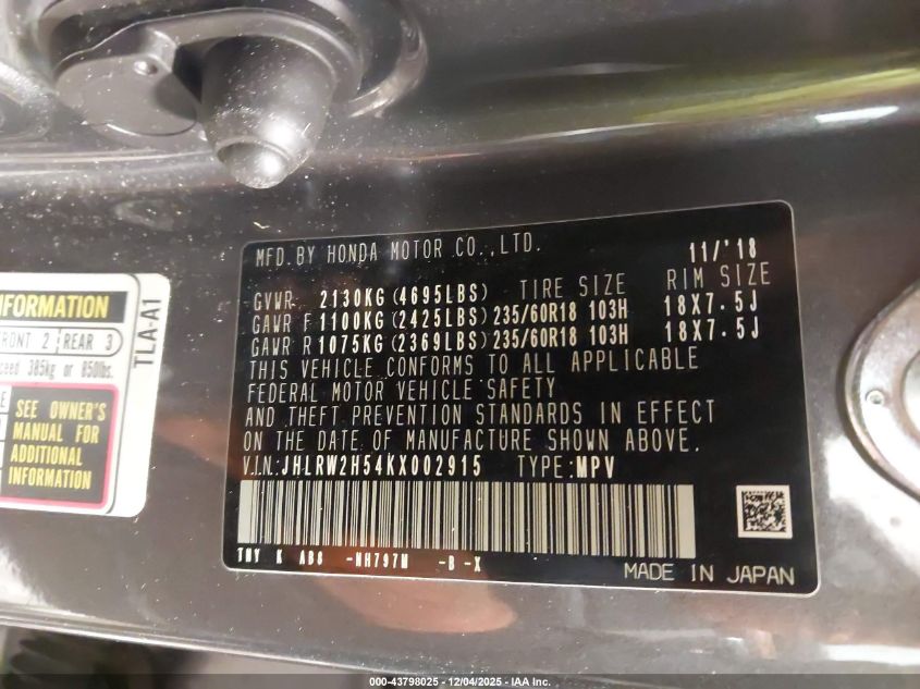 2019 HONDA CR-V 2019 року Бензин, 1.5, Полный привод, vin - JHLRW2H54KX002915 из США