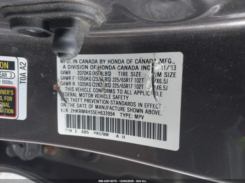 2014 HONDA CR-V 2014 року Бензин, 2.4, Полный привод, vin - 2HKRM4H55EH633994 из США