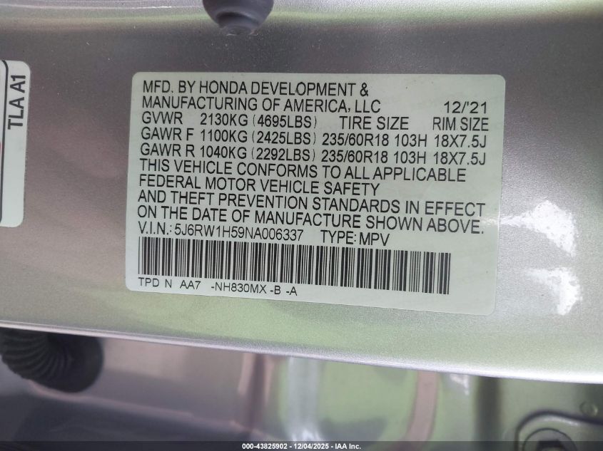 2022 HONDA CR-V 2022 року Бензин, 1.5, Передний привод, vin - 5J6RW1H59NA006337 из США