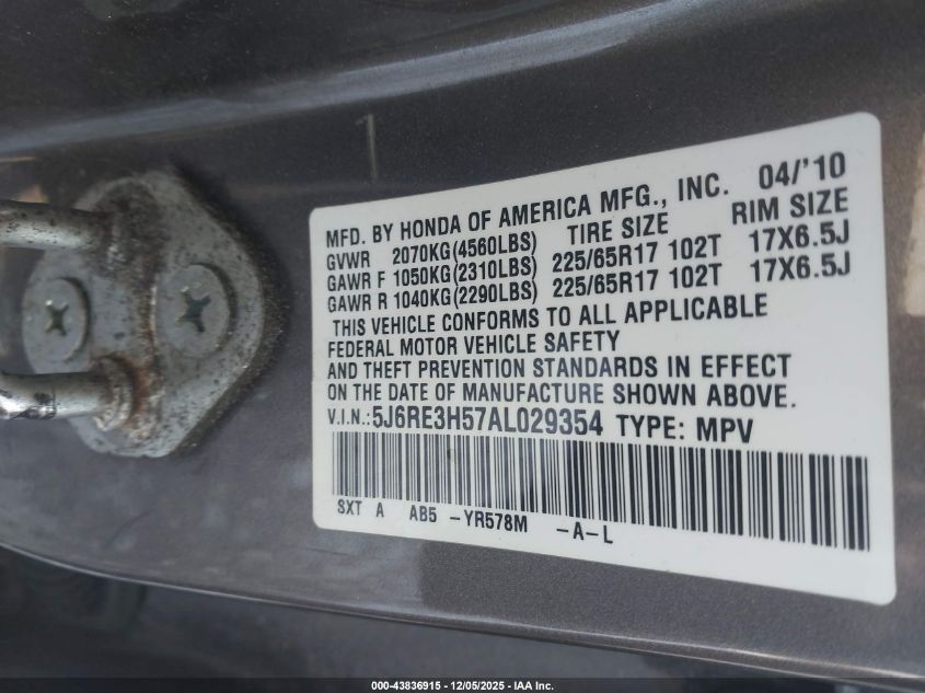 2010 HONDA CR-V 2010 року Бензин, 2.4, Передний привод, vin - 5J6RE3H57AL029354 из США