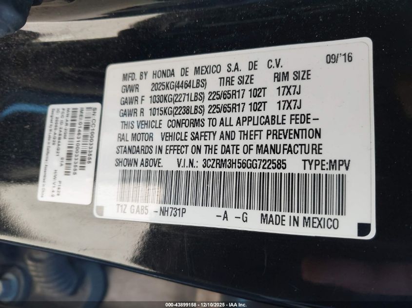 2016 HONDA CR-V 2016 року Бензин, 2.4, Передний привод, vin - 3CZRM3H56GG722585 из США