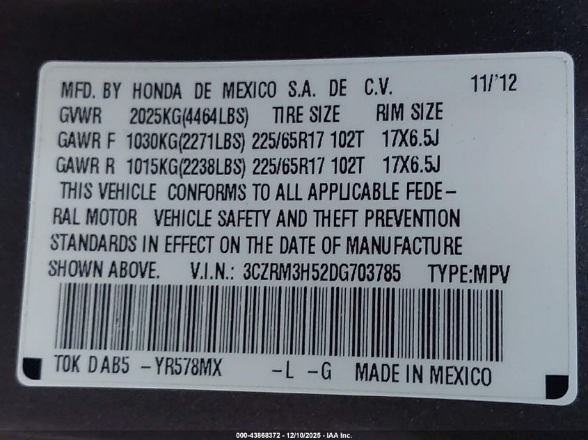 2013 HONDA CR-V 2013 року Бензин, 2.4, Передний привод, vin - 3CZRM3H52DG703785 из США