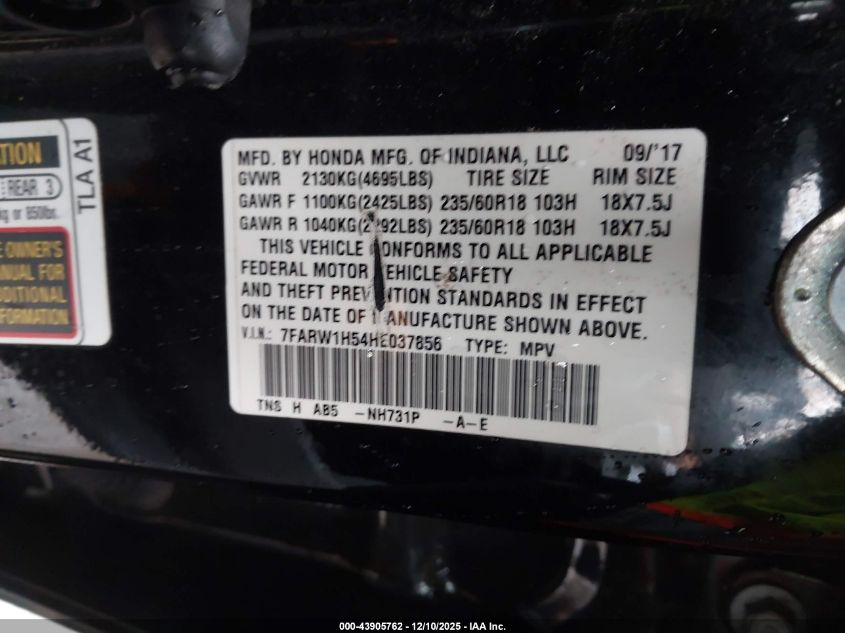 2017 HONDA CR-V 2017 року Бензин, 1.5, Передний привод, vin - 7FARW1H54HE037856 из США