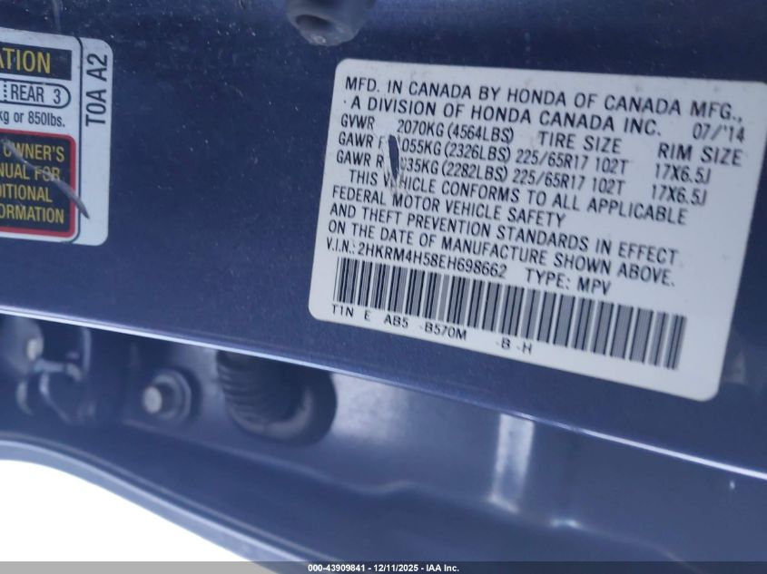 2014 HONDA CR-V 2014 року Бензин, 2.4, Полный привод, vin - 2HKRM4H58EH698662 из США