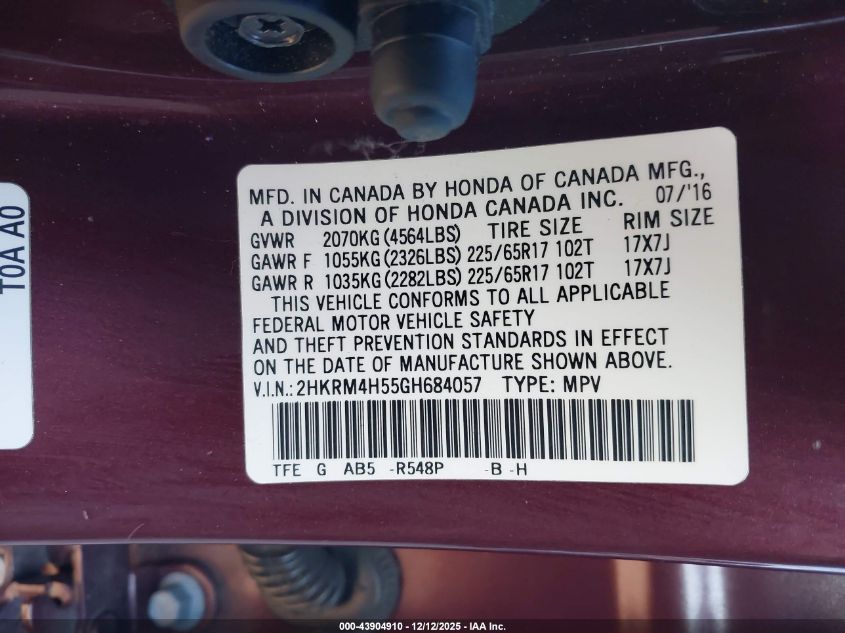 2016 HONDA CR-V 2016 року Бензин, 2.4, Полный привод, vin - 2HKRM4H55GH684057 из США