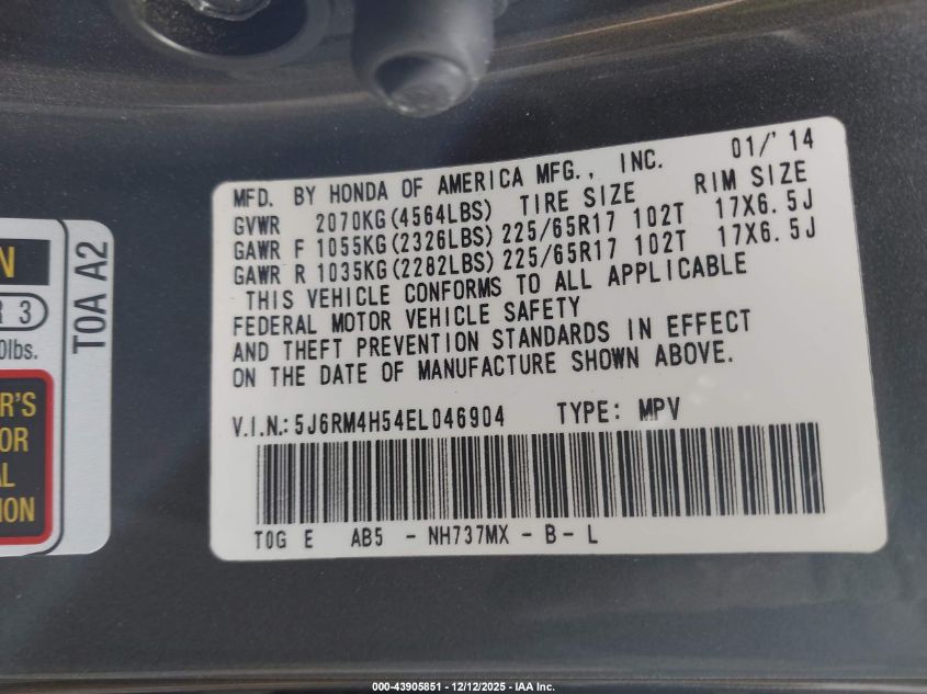 2014 HONDA CR-V 2014 року Бензин, 2.4, Полный привод, vin - 5J6RM4H54EL046904 из США