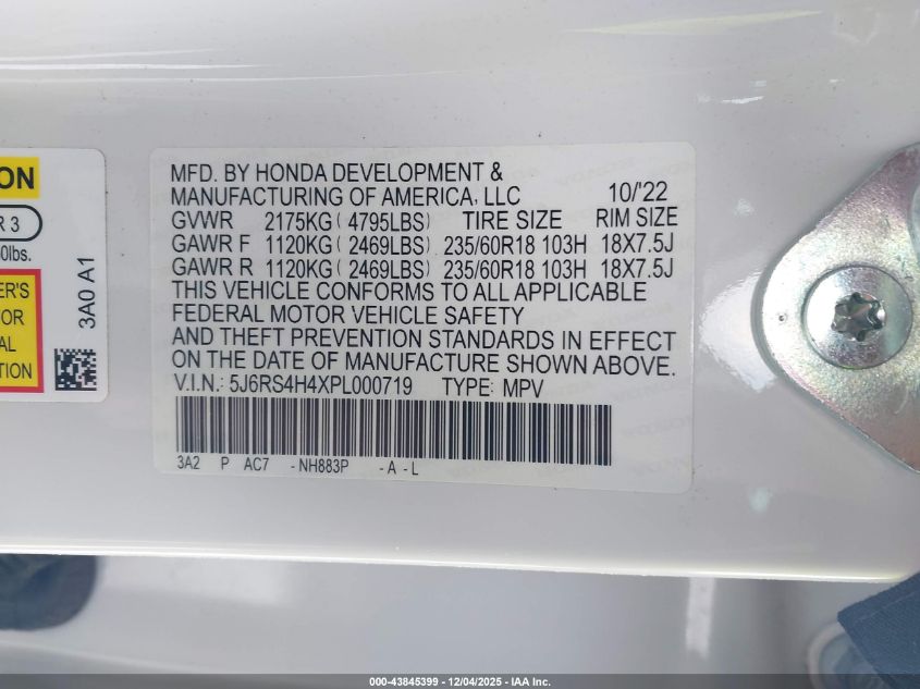2023 HONDA CR-V 2023 року Бензин, 1.5, Полный привод, vin - 5J6RS4H4XPL000719 из США