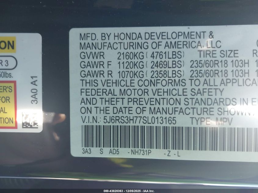 2025 HONDA CR-V 2025 року Бензин, 1.5, Передний привод, vin - 5J6RS3H77SL013165 из США