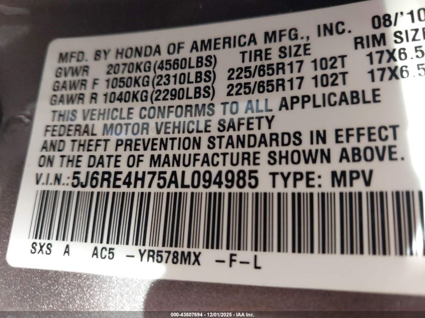 Цвет СерыйЦилиндры 4Привод Полный приводVIN 5J6RE4H75AL094985Состояние Заводится и едет (проверено)Повреждения Передняя или задняя AutoRIA