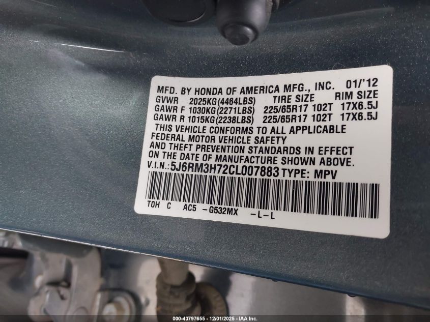 2012 HONDA CR-V 2012 року Бензин, 2.4, Передний привод, vin - 5J6RM3H72CL007883 из США
