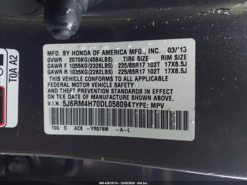2013 HONDA CR-V 2013 року Бензин, 2.4, Полный привод, vin - 5J6RM4H70DL058094 из США