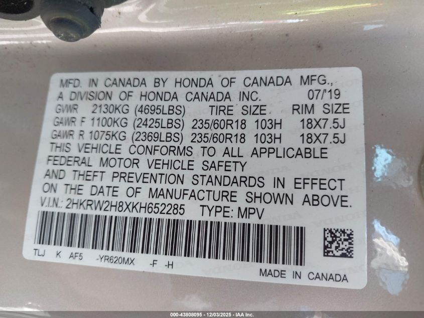 2019 HONDA CR-V 2019 року Бензин, 1.5, Полный привод, vin - 2HKRW2H8XKH652285 из США