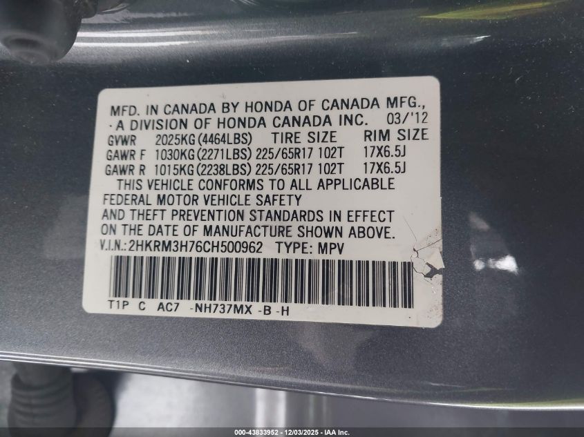 2012 HONDA CR-V EXL