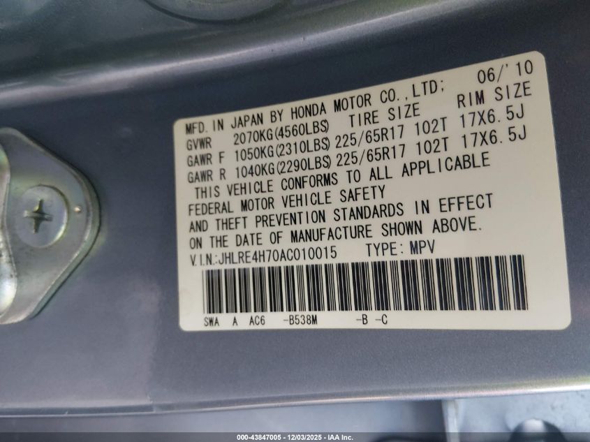 2010 HONDA CR-V 2010 року Бензин, 2.4, Полный привод, vin - JHLRE4H70AC010015 из США