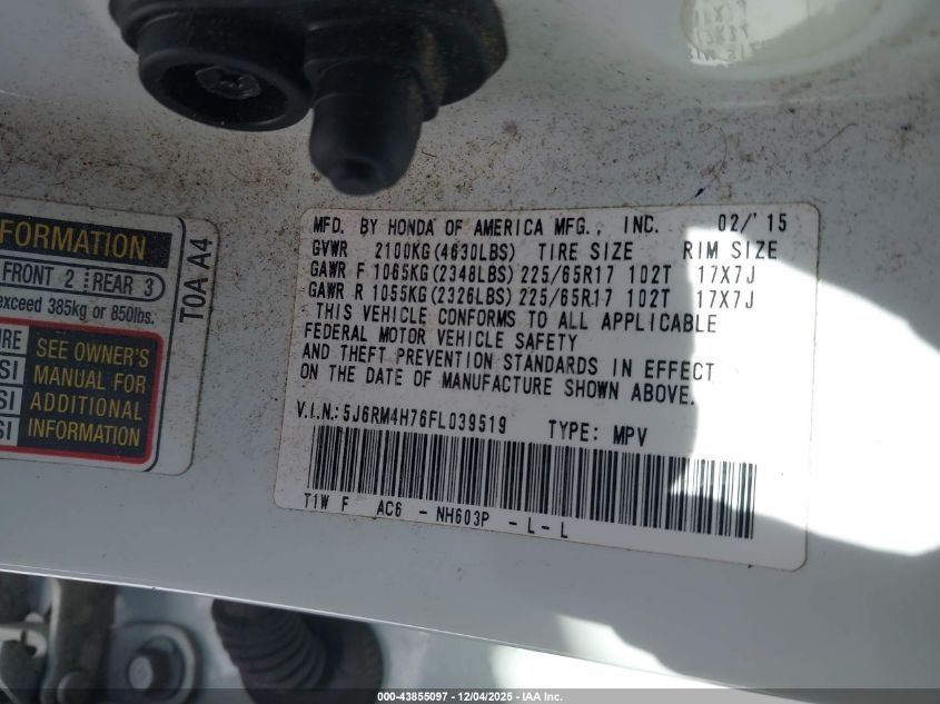 2015 HONDA CR-V 2015 року Бензин, 2.4, Полный привод, vin - 5J6RM4H76FL039519 из США
