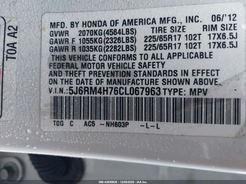 2012 HONDA CR-V 2012 року Бензин, 2.4, Полный привод, vin - 5J6RM4H76CL067963 из США