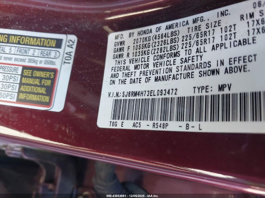Цвет ФиолетовыйЦилиндры 4Привод Полный приводVIN 5J6RM4H73EL093472Состояние Заводится и едет (проверено)Повреждения Передняя и задняя AutoRIA
