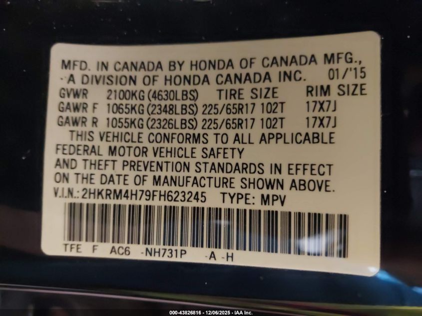 2015 HONDA CR-V 2015 року Бензин, 2.4, Полный привод, vin - 2HKRM4H79FH623245 из США