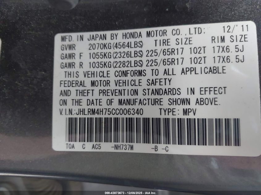 2012 HONDA CR-V 2012 року Бензин, 2.4, Полный привод, vin - JHLRM4H75CC006340 из США