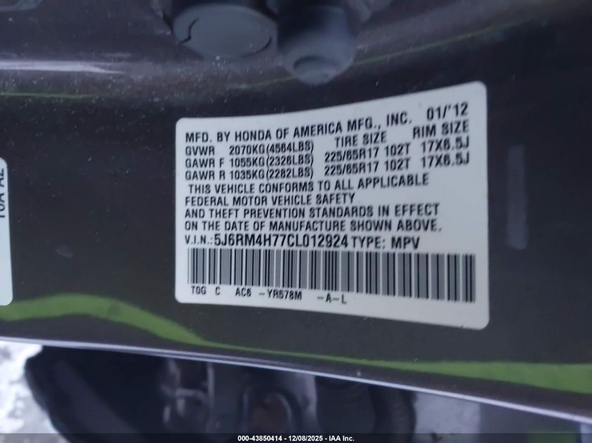 2012 HONDA CR-V 2012 року Бензин, 2.4, Полный привод, vin - 5J6RM4H77CL012924 из США