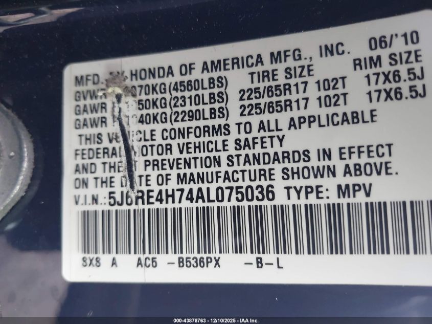 2010 HONDA CR-V 2010 року Бензин, 2.4, Полный привод, vin - 5J6RE4H74AL075036 из США