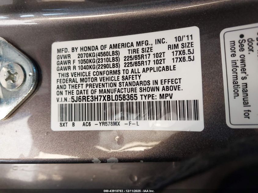 2011 HONDA CR-V 2011 року Бензин, 2.4, Передний привод, vin - 5J6RE3H7XBL058365 из США
