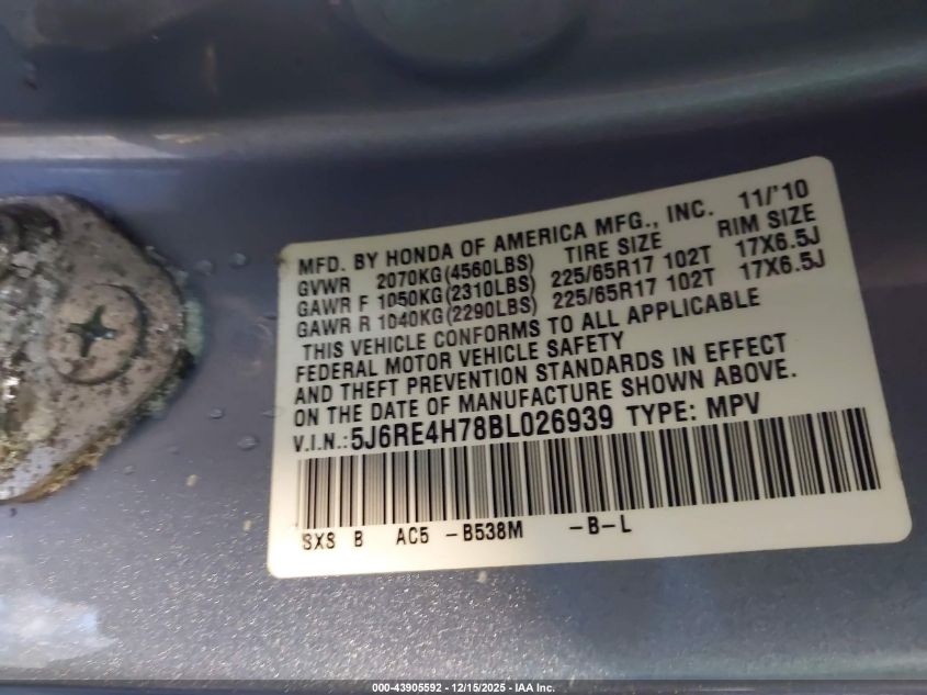 2011 HONDA CR-V 2011 року Бензин, 2.4, Полный привод, vin - 5J6RE4H78BL026939 из США