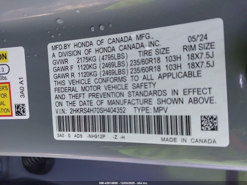 2025 HONDA CR-V 2025 року Бензин, 1.5, Полный привод, vin - 2HKRS4H70SH404352 из США