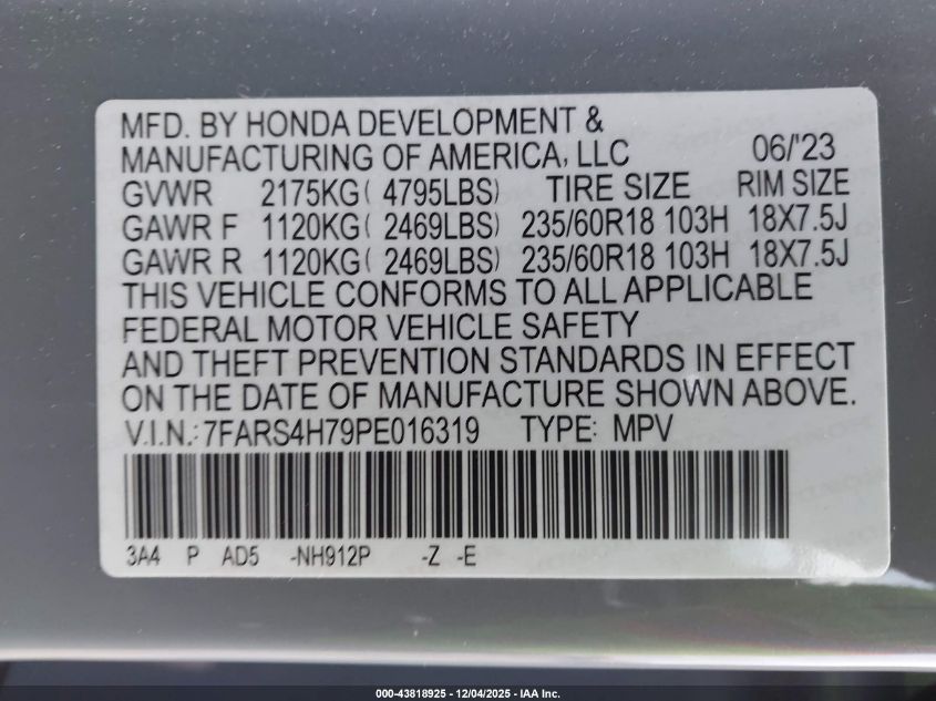 2023 HONDA CR-V 2023 року Бензин, 1.5, Полный привод, vin - 7FARS4H79PE016319 из США
