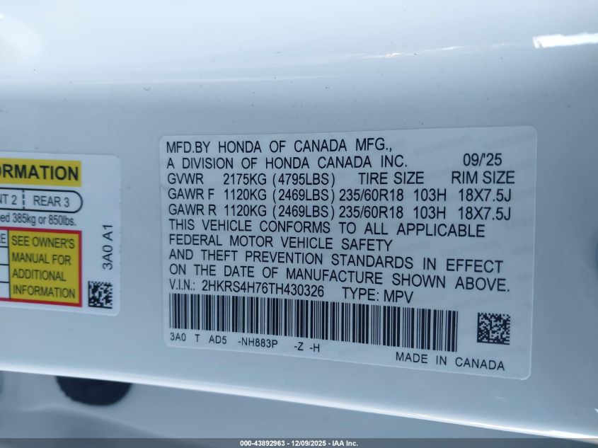 2026 HONDA CR-V 2026 року Бензин, 1.5, Полный привод, vin - 2HKRS4H76TH430326 из США