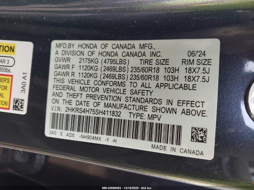 2025 HONDA CR-V 2025 року Бензин, 1.5, Полный привод, vin - 2HKRS4H75SH411832 из США