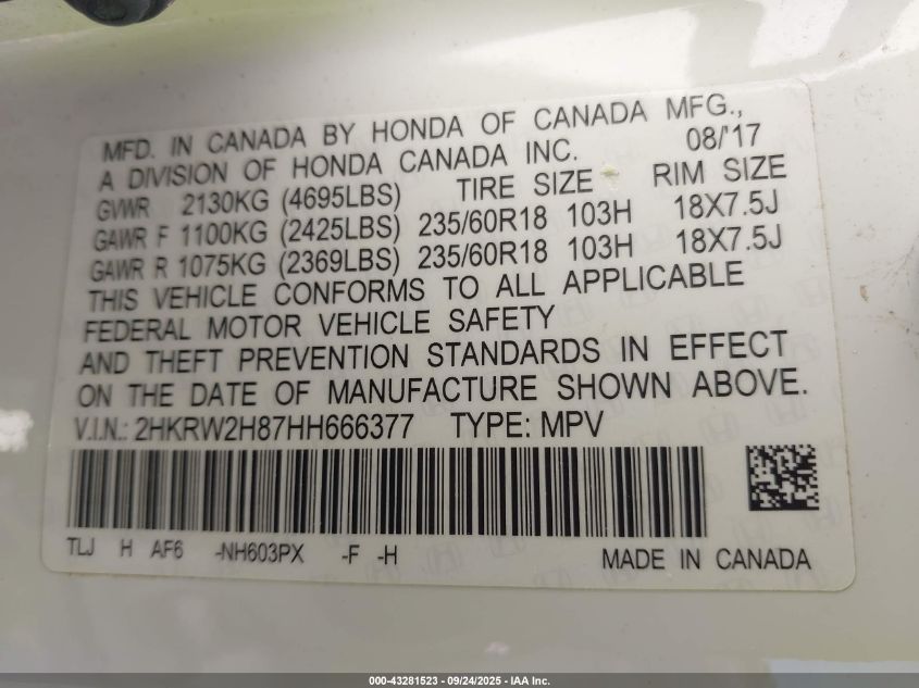 2017 HONDA CR-V 2017 року Бензин, 1.5, Полный привод, vin - 2HKRW2H87HH666377 из США