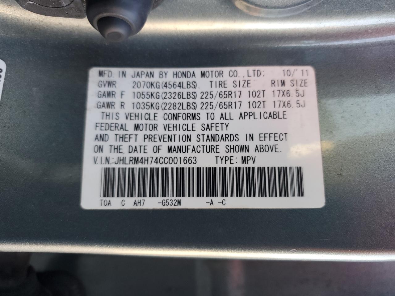 2012 HONDA CR-V 2012 року Бензин, 2.4, Полный привод, vin - JHLRM4H74CC001663 из США