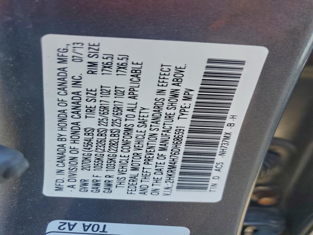 Цвет СерыйЦилиндры 4Привод Полный приводVIN 2HKRM4H76DH686591Состояние Заводится и едет (проверено)Повреждения По бокам AutoRIA