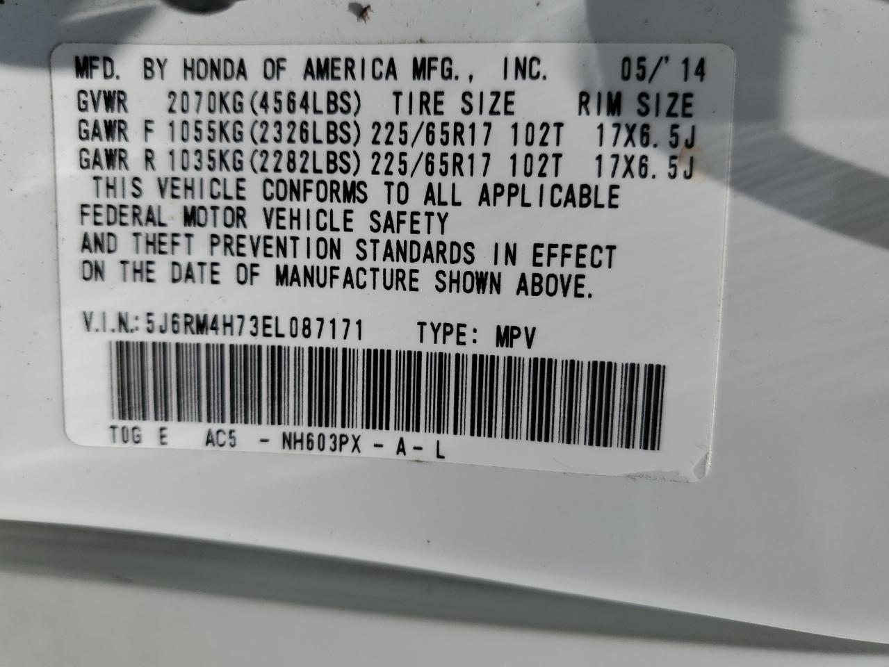 Цвет БелыйЦилиндры 4Привод Полный приводVIN 5J6RM4H73EL087171Состояние НеизвестноПовреждения Передняя или задняя AutoRIA