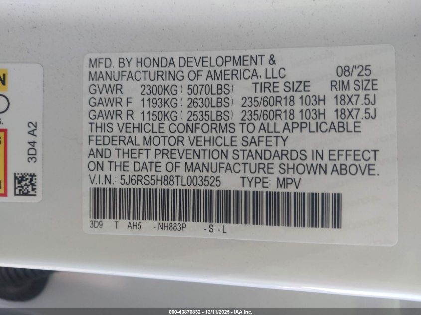 2026 HONDA CR-V HYBRID 2026 року Гибрид, 2.0, Передний привод, vin - 5J6RS5H88TL003525 из США