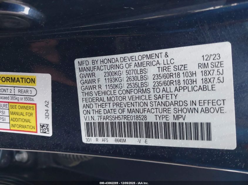 2024 HONDA CR-V HYBRID 2024 року Гибрид, 2.0, Передний привод, vin - 7FARS5H57RE018528 из США