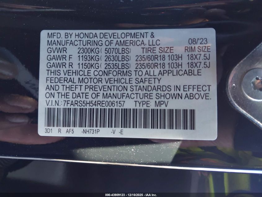 2024 HONDA CR-V HYBRID 2024 року Гибрид, 2.0, Передний привод, vin - 7FARS5H54RE006157 из США