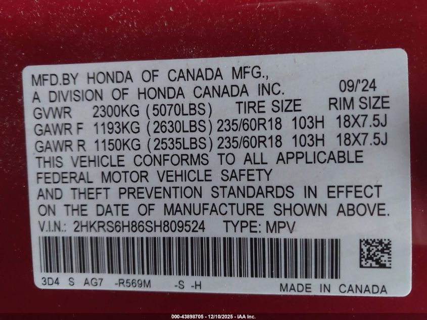 2025 HONDA CR-V HYBRID 2025 року Гибрид, 2.0, Полный привод, vin - 2HKRS6H86SH809524 из США