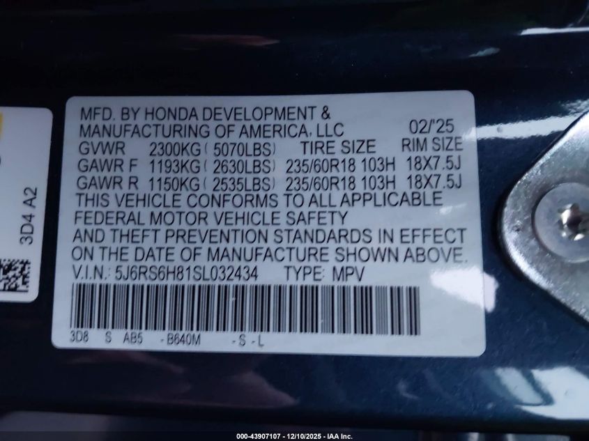 2025 HONDA CR-V HYBRID 2025 року Гибрид, 2.0, Полный привод, vin - 5J6RS6H81SL032434 из США
