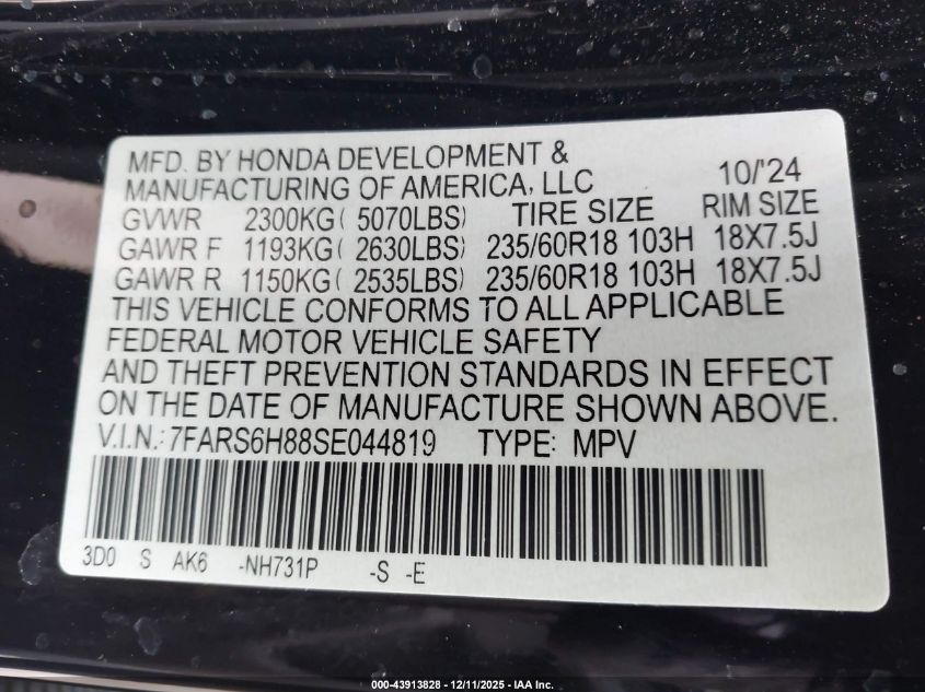 2025 HONDA CR-V HYBRID 2025 року Гибрид, 2.0, Полный привод, vin - 7FARS6H88SE044819 из США