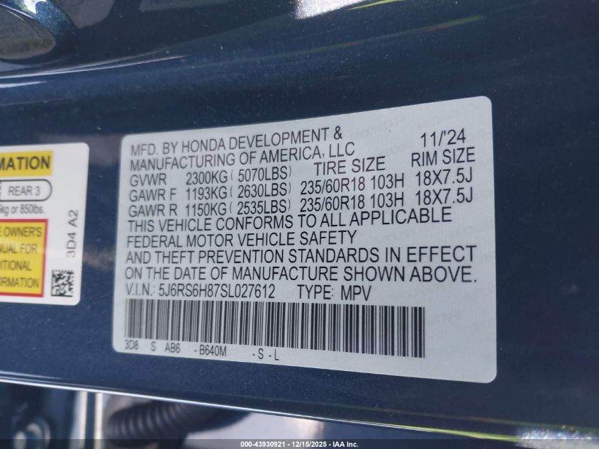 2025 HONDA CR-V HYBRID 2025 року Гибрид, 2.0, Полный привод, vin - 5J6RS6H87SL027612 из США