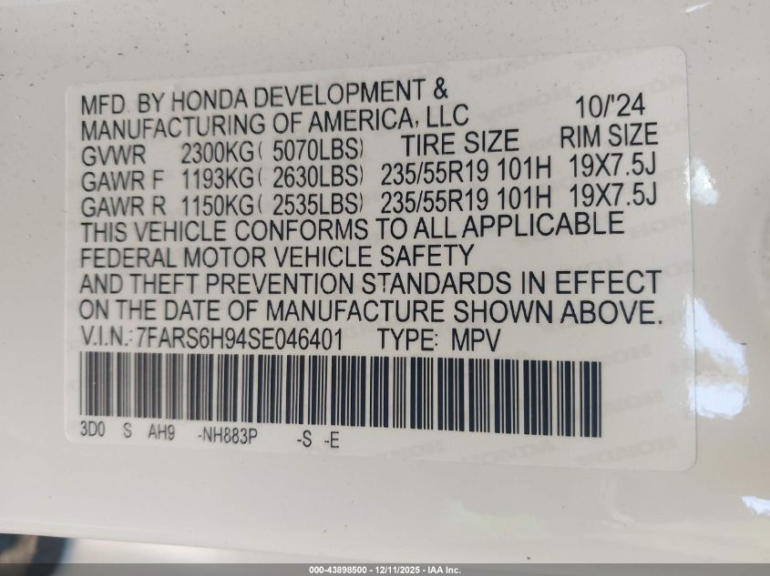 2025 HONDA CR-V HYBRID 2025 року Гибрид, 2.0, Полный привод, vin - 7FARS6H94SE046401 из США
